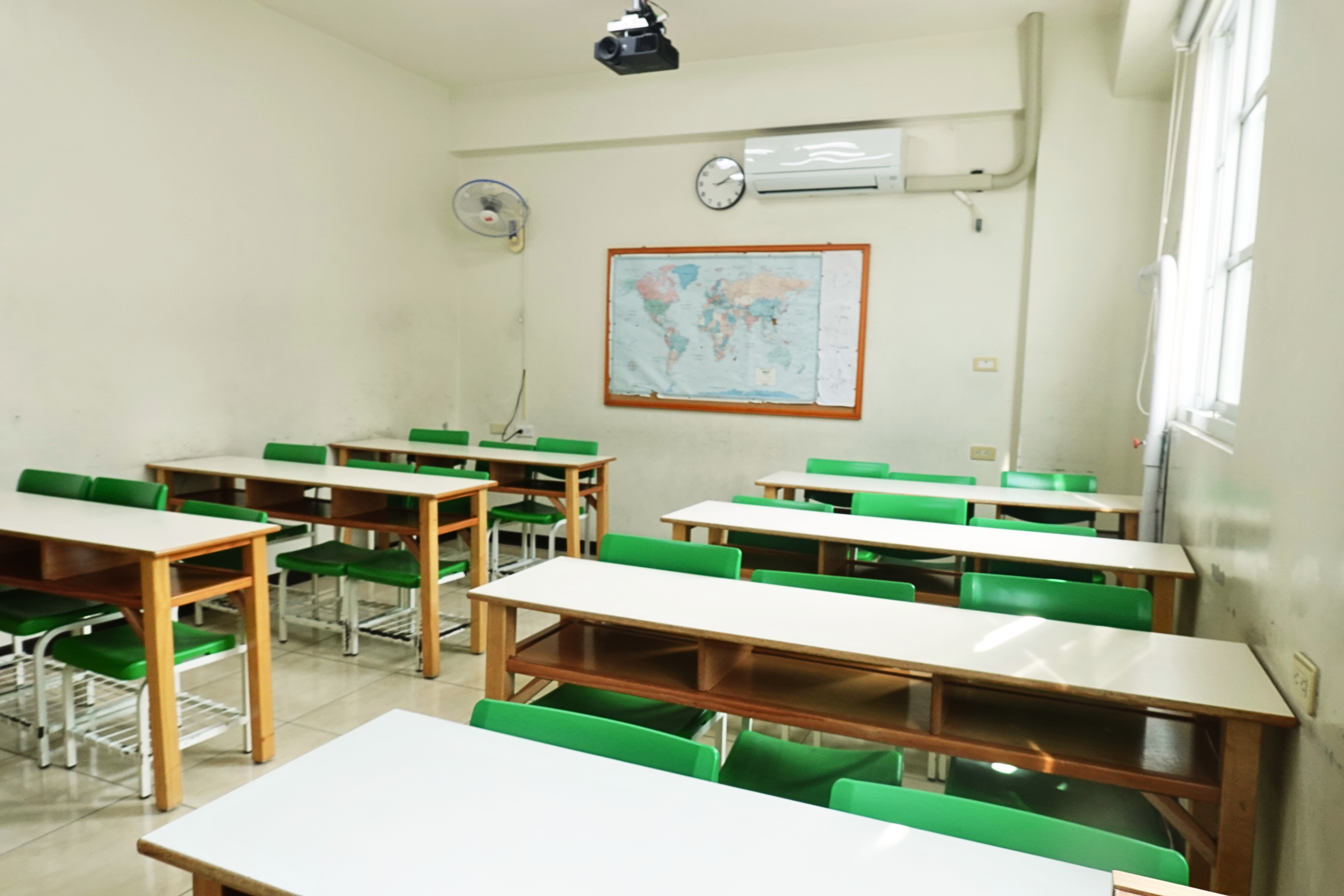 採光明亮、環境整潔,每天課前皆有專人打掃消毒